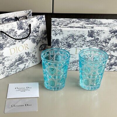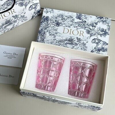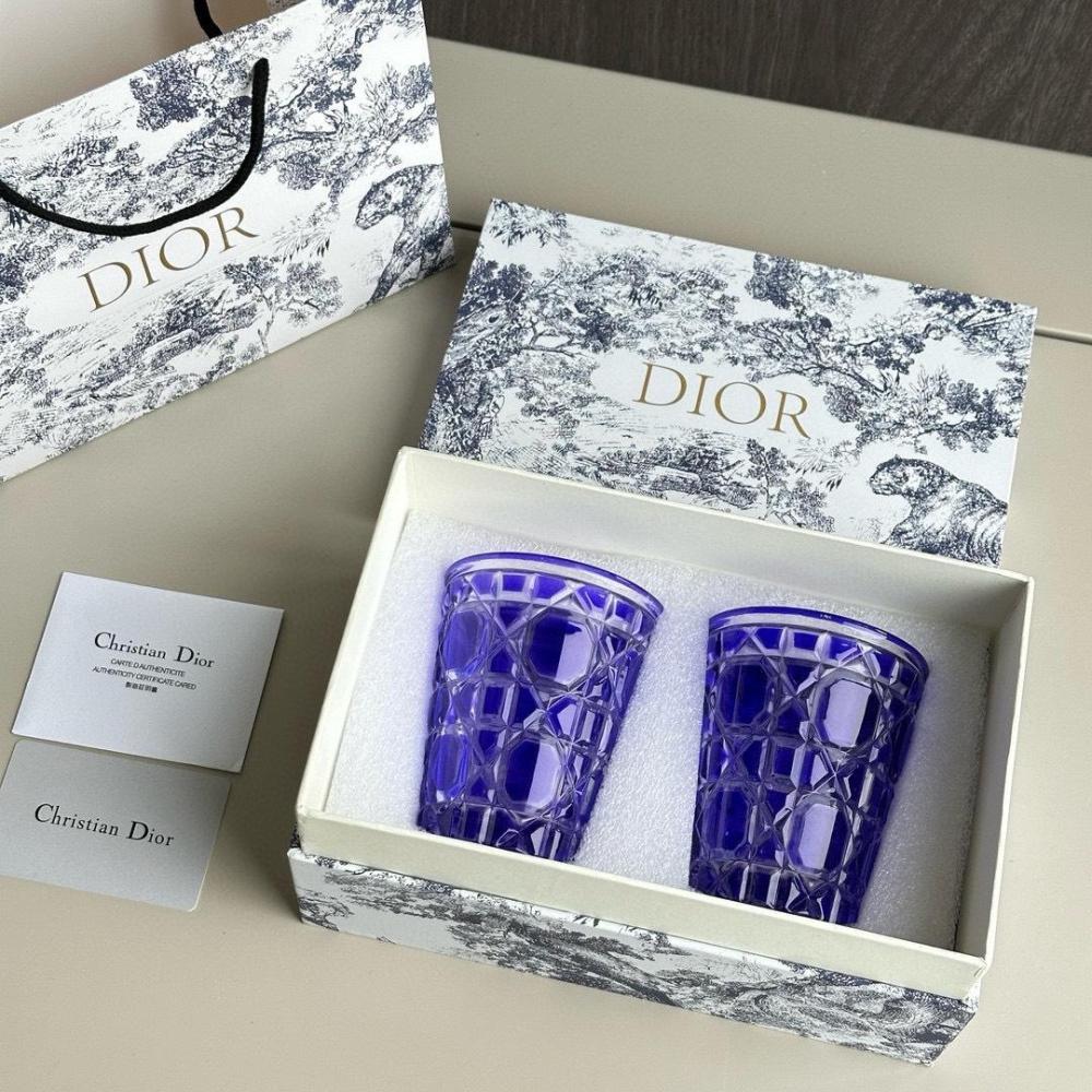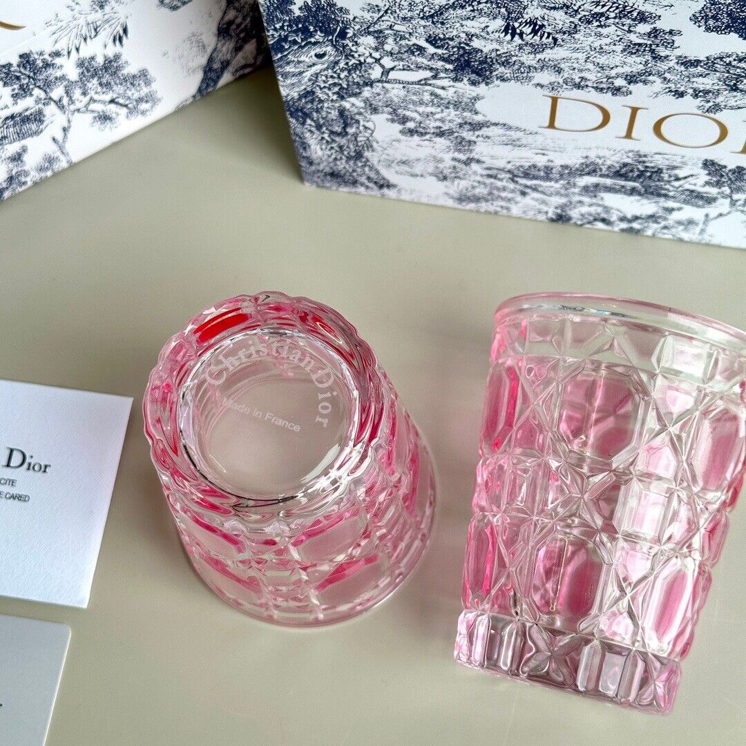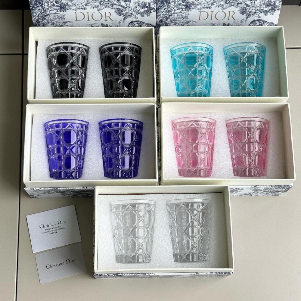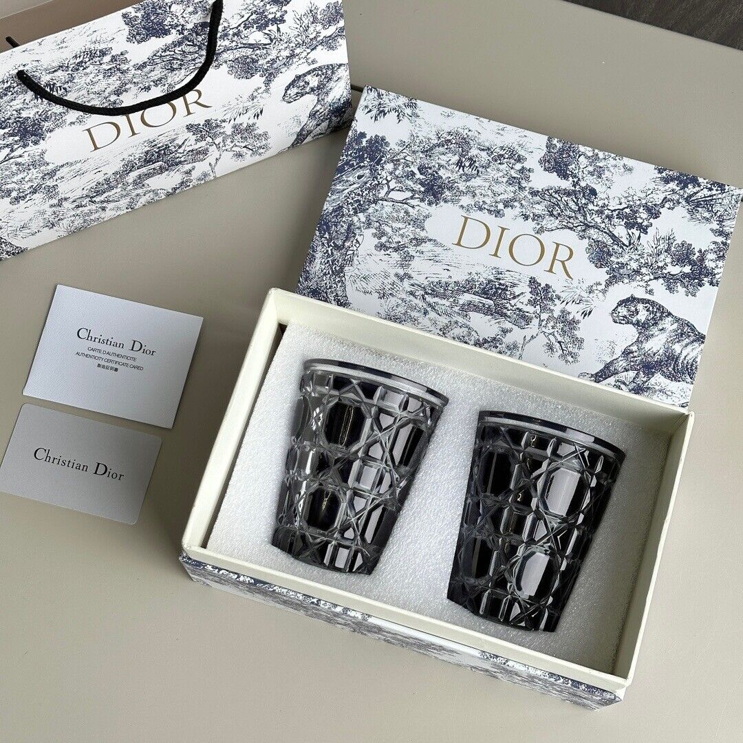 Luxury Dior glass tumblers, each set elegantly packaged in its own individual box.
