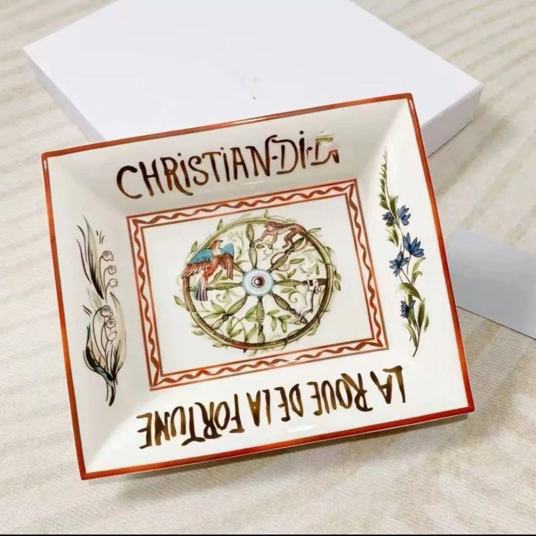 Refined porcelain catchall tray designed with artistic detailing — available in various shapes and patterns.