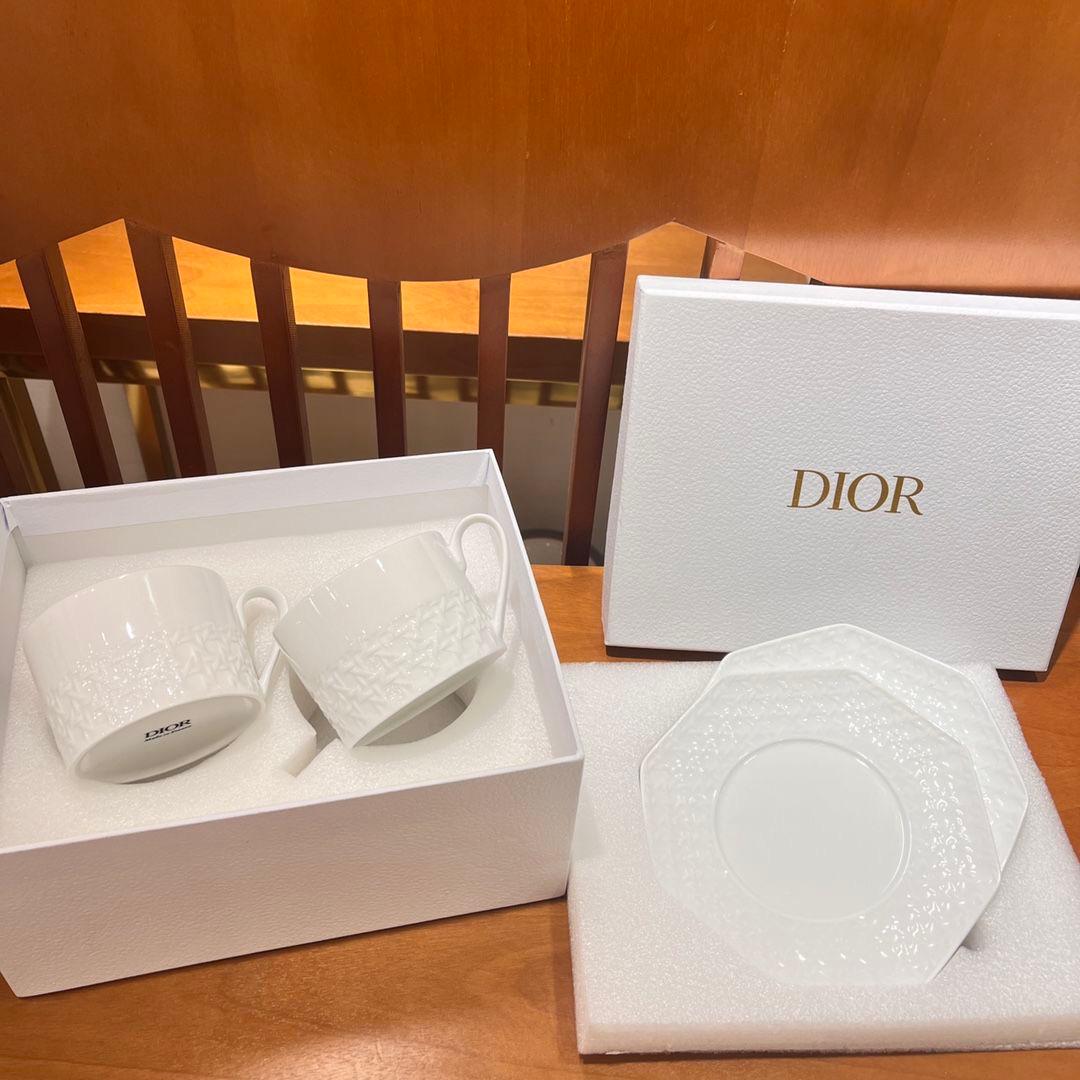 Minimalist Dior cup set with embossed geometric texture for a sleek and modern presentation.