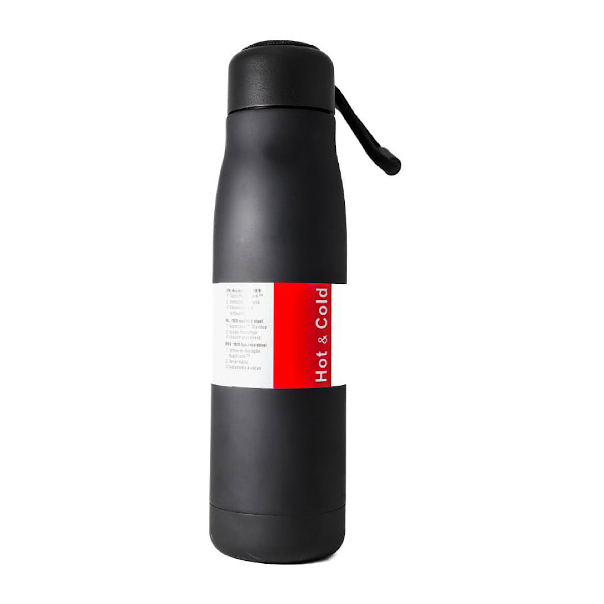 Vacuum insulated 350 ml or 500 ml thermal bottle in black and white, keeps hot drinks hot for 8 hours and cold drinks cold for 20 hours. Stay refreshed on the go!