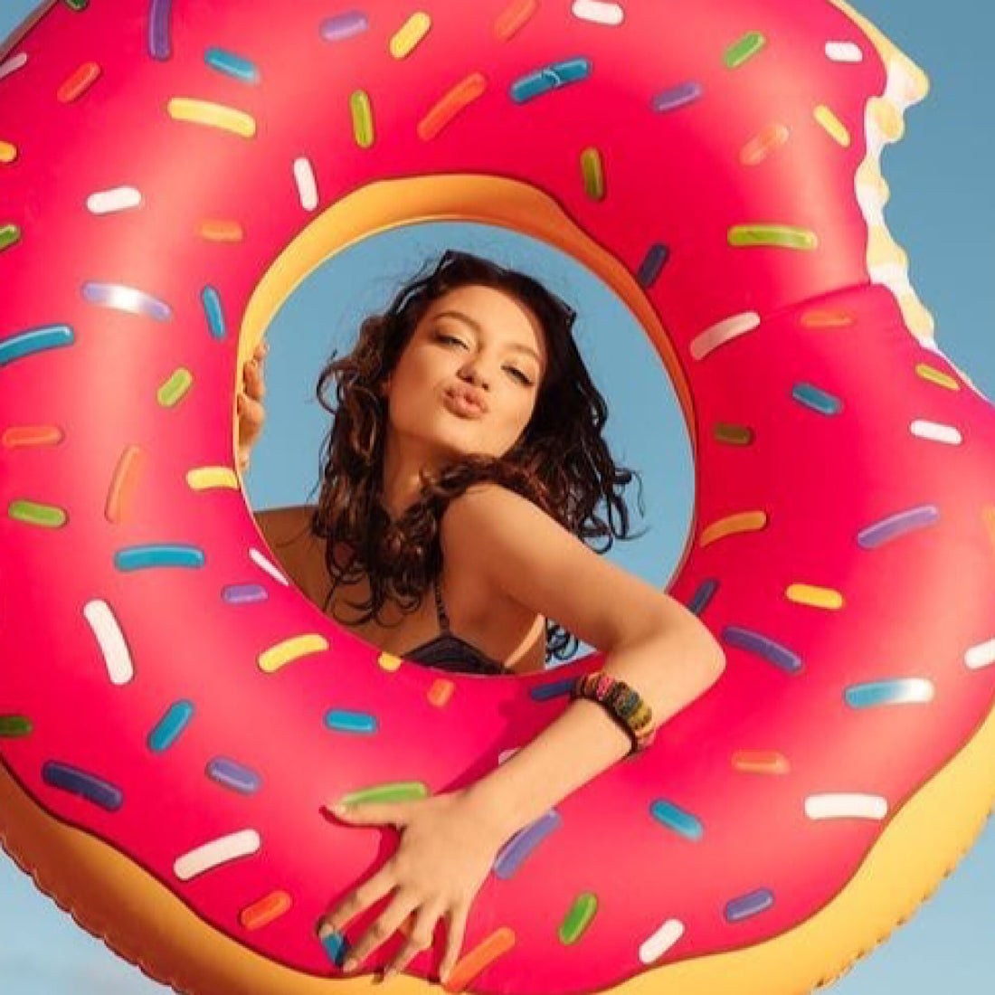 This fun donut-shaped swimming ring is made from high-quality, durable PVC for comfort and support....