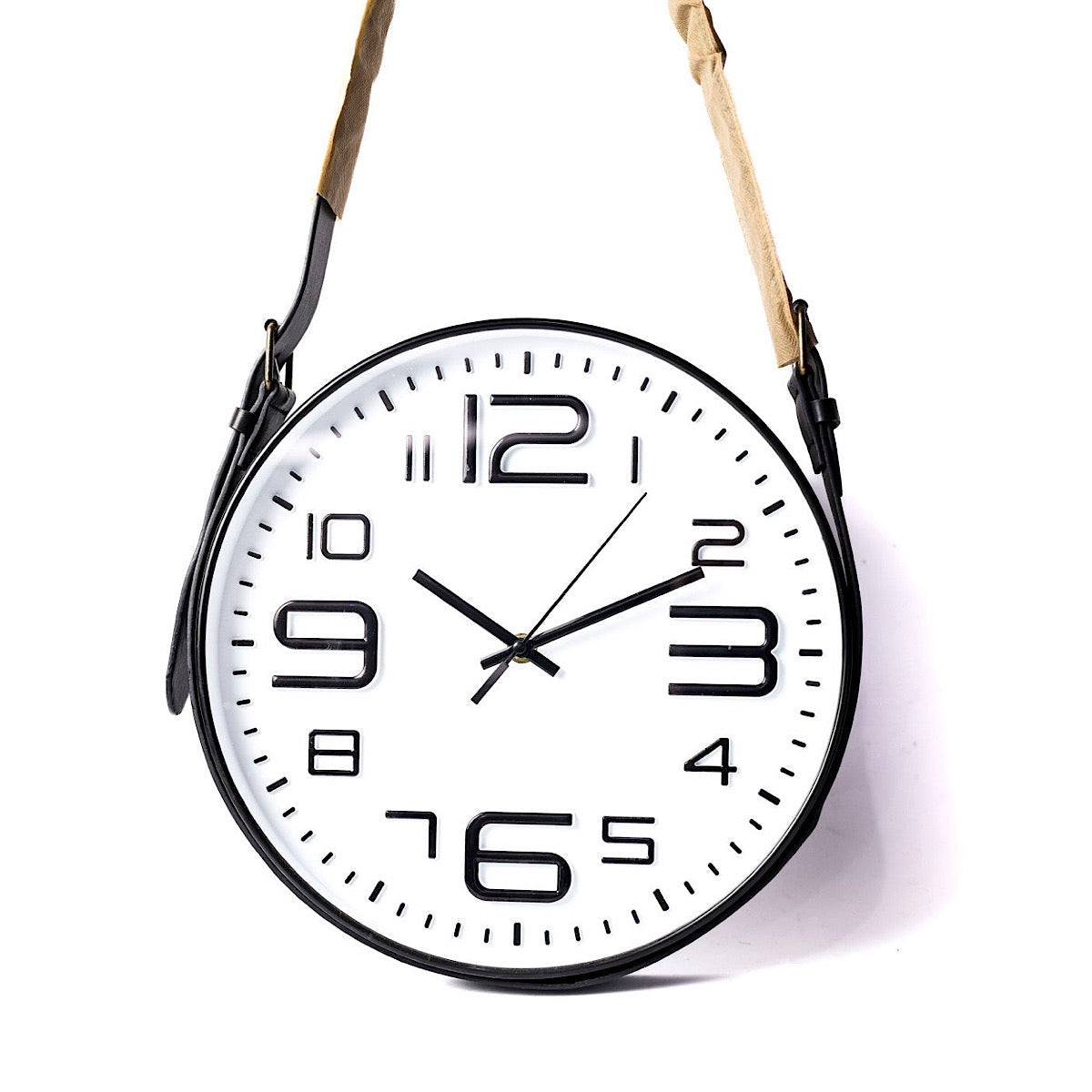 Elegant wall clock featuring a sleek design complemented by a rich Black leather belt. Its timeless charm effortlessly enhances any interior space.